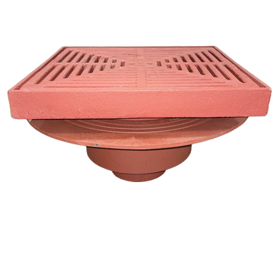 MIFAB® F1440 Series lacquered cast iron deep sump floor drain with anchor flange, weepholes, and adjustable collar with standard 1” (25) thick, 12” (305) hinged square, (specify material finish) tractor grate.
