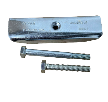 MIFAB® Model T1400-PGL-STL is a grate locking bar assembly designed for use with MIFAB T1320-FL trench drain systems. The assembly consists of a metallic locking bar with a threaded center opening and associated fastening hardware. The locking bar is stamped with orientation markings to ensure proper installation and alignment during grate securement.